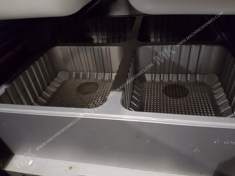 This used Multivac R530 Thermoformer is built in 2002. The machine has a film width of 420mm and there is a dye set on the machine with an exit of 440mm. The format is now divided in a 3.2 format. The machine is equipped with 2 formats. These formats can be used for Rigid film packaging. The format has a stamp. The frame of the machine is currently 11400mm long, but we can always adjust this to the dimension you need.