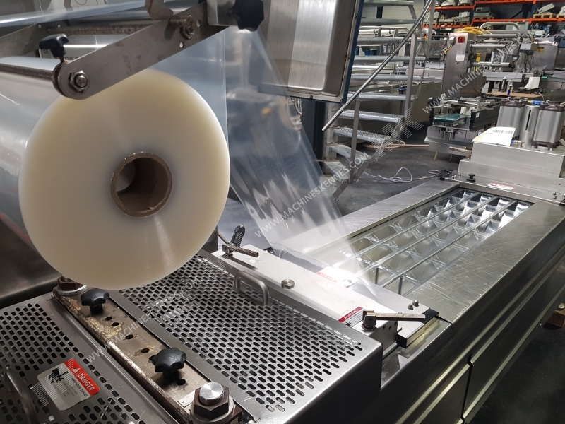 Dieser gebrauchte Multivac R140 Tiefziehmaschine Maschine ist in 2006 gebaut. Auf der SPS in der Maschine stehen 3957 Betriebsstunden. Die Maschine hat eine Filmbreite von 420mm, auf der Maschine ist einem Ausgang von 185mm jetzt. Das Format wird jetzt in einem 4.1 Format geteilt. Die Maschine ist mit 1 Format ausgestattet. Dieses Format kann für Hartfoilverpackungen verwendet werden. Das Format hat ein Stempel. Der Rahmen der Maschine ist jetzt 3800mm lang, aber wir können immer dieses an die Abmessung justieren, die Sie benötigen.