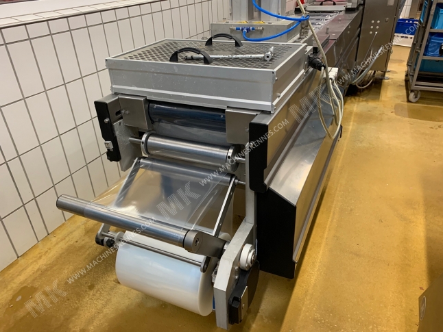 Dieser gebrauchte Multivac R230 Thermoformer Maschine ist in 1999 gebaut. Die Maschine hat eine Filmbreite von 320mm, auf der Maschine ist einem Ausgang von 240mm jetzt. Das Format wird jetzt in einem 2.1 Format geteilt. Die Maschine ist mit 2 Formate ausgestattet. Diese Formate können für Weich Foilverpackungen verwendet werden. Das Format hat ein Stempel. Der Rahmen der Maschine ist jetzt 6350mm lang, aber wir können immer dieses an die Abmessung justieren, die Sie benötigen.