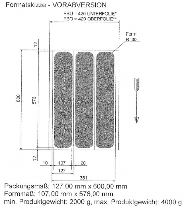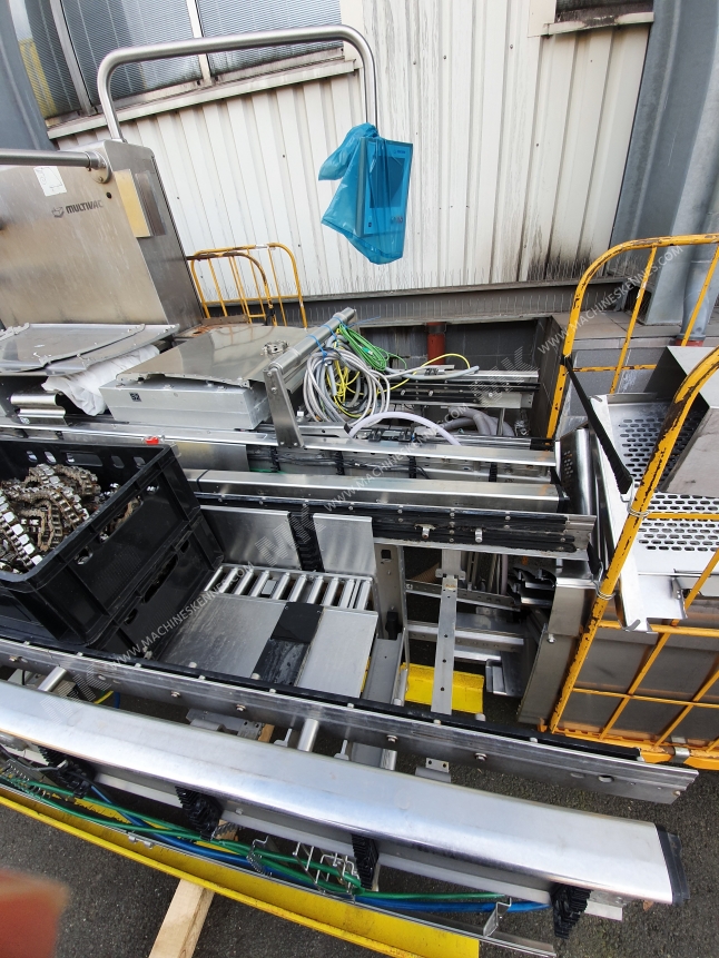 Dieser gebrauchte Multivac R535 Thermoformer Maschine ist in 2014 gebaut. Die Maschine hat eine Filmbreite von 420mm, auf der Maschine ist einem Ausgang von 600mm jetzt. Das Format wird jetzt in einem 3.1 Format geteilt. Die Maschine ist mit 4 Formate ausgestattet. Diese Formate können für Weich & Hartfoilverpackungen verwendet werden. Das Format hat keinen Stempel. Der Rahmen der Maschine ist jetzt 10500mm lang, aber wir können immer dieses an die Abmessung justieren, die Sie benötigen.