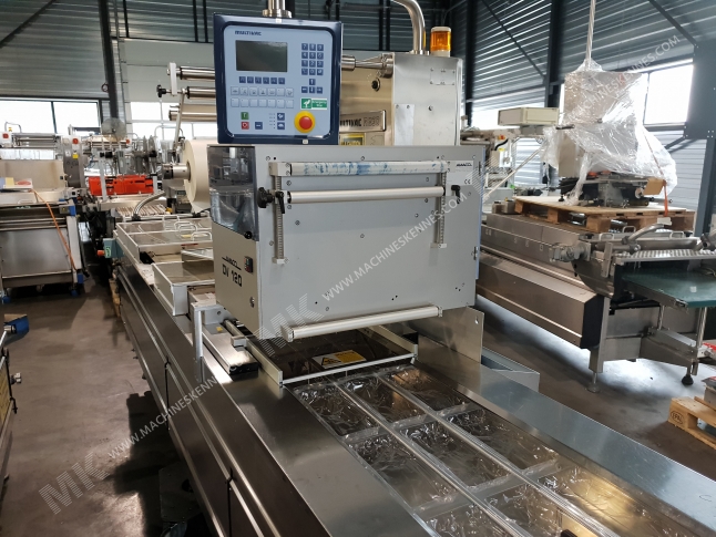 Deze gebruikte Multivac R230 Dieptrekmachine is van bouwjaar 1999. De machine heeft een foliebreedte van 420mm en er is een formaat geplaatst met een afslaglengte van 295mm. Het formaat is nu opgedeeld in een 3.1 indeling. De machine is voorzien van 1 formaat. Dit formaat kan voor Zachtfolie verpakkingen gebruikt worden. Het formaat beschikt niet over een stempel. Het frame van de machine is op dit moment 6700mm lang, maar kunnen wij altijd naar wens aanpassen.