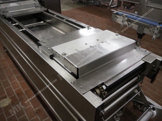 To używane Multivac R140 Termoformierka jest wbudowany 2004. Maszyna ma szerokość filmu wynoszącą 420mm i na maszynie znajduje się zestaw barwników z wyjściem 240mm. Format jest teraz podzielony na a 1.1 format. Maszyna jest wyposażona w 1 format. Ten format może być używany do Miękka i twarda folia opakowanie. Format nie ma znaczek. Rama maszyny jest obecnie 3000mm długości, ale zawsze możemy dostosować to do potrzebnego wymiaru.