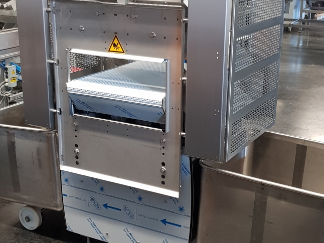 bu makine 10 kg'lık ürünleri sınırlı bir uzunluğa dökmek için uygundur. ürünler plastik uçuşlar vasıtasıyla kayıştan itilir. bu modülün bir hata sinyali geliştirmesi için farklı bir makine kurulmalıdır.